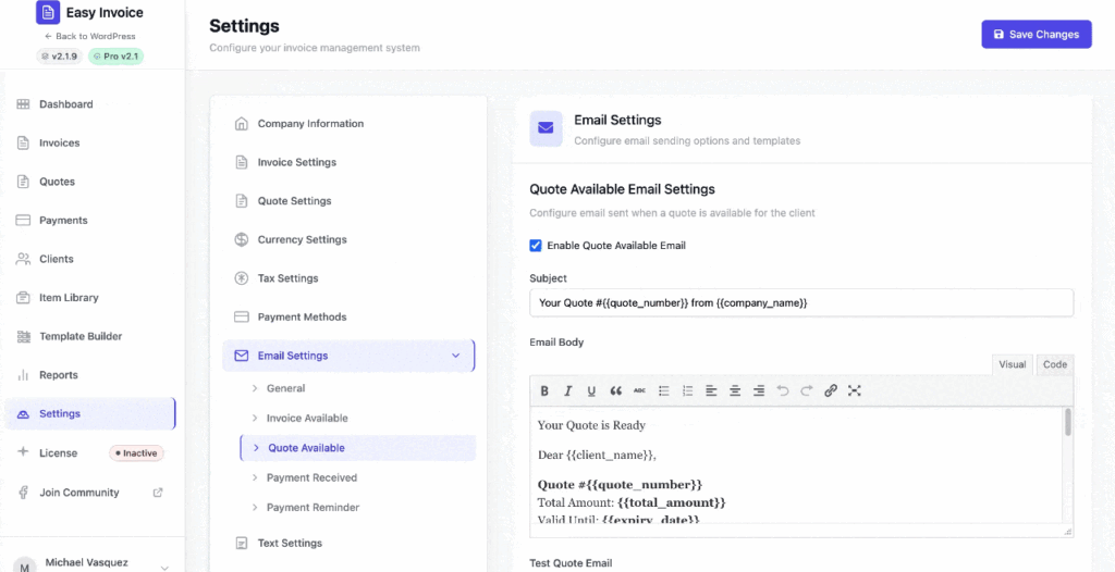 • Quote Settings